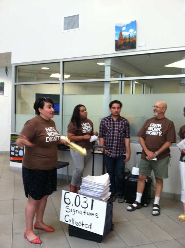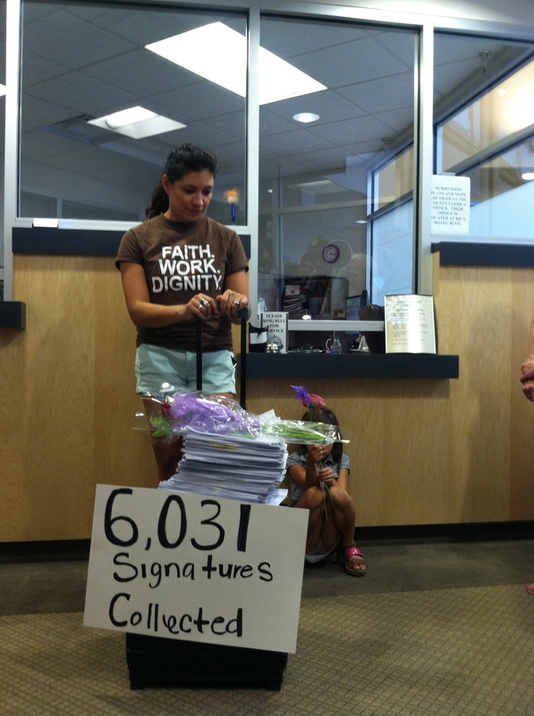Entrega de 6.031 firmas al secretario municipal.